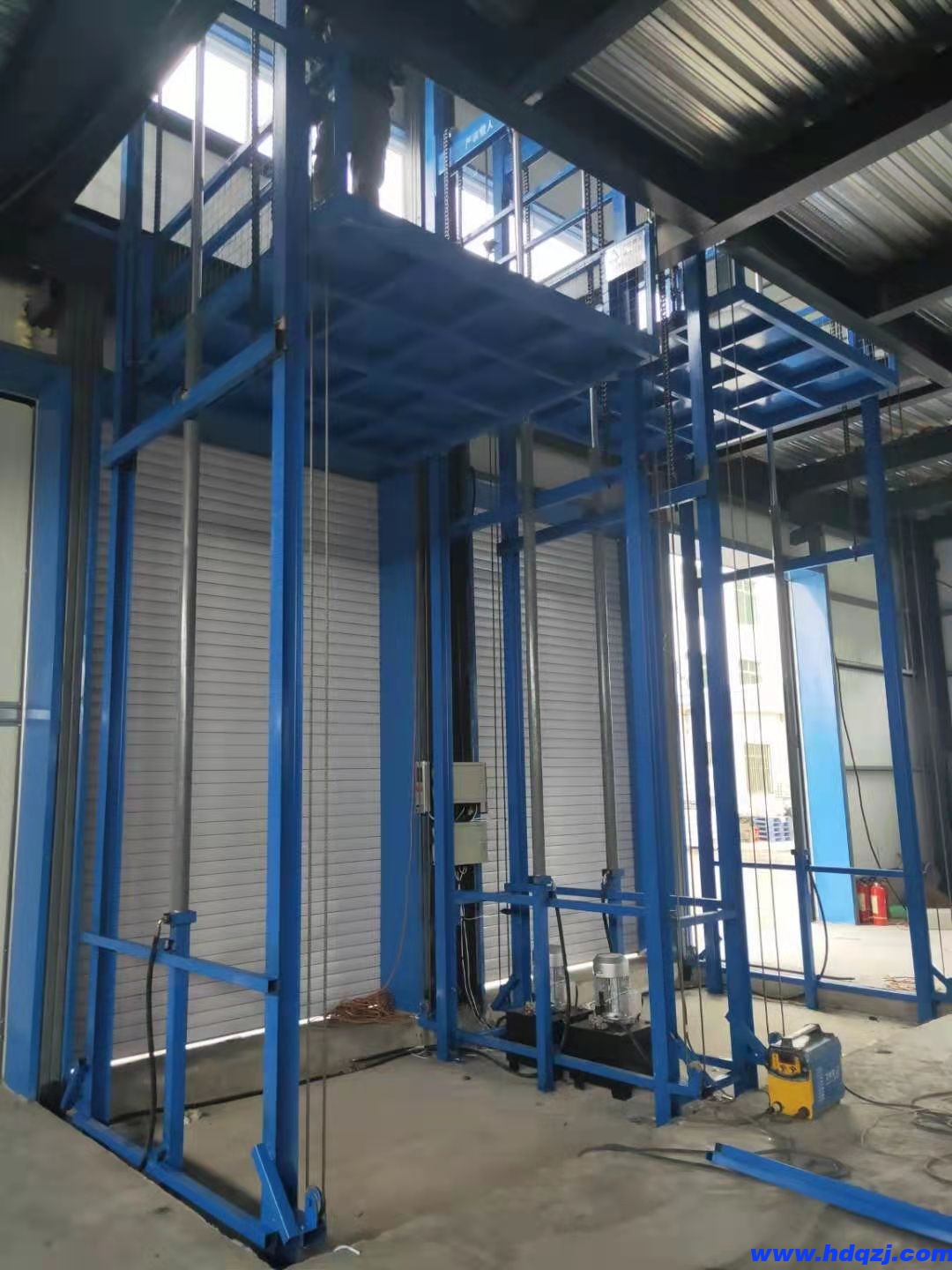 6.液壓泵站安裝:放置到液壓升降貨梯的旁邊就可以,如果在室外要安裝防曬、防雨防護罩。