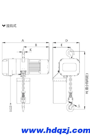 | 掛鉤式環鏈電動葫蘆0.25T-5T尺寸參數 | |||||||