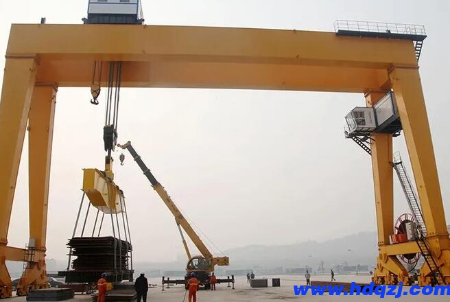 跨墩龍門吊是指橫跨兩個支墩之間的起重機械。其工作原理主要是利用電機驅動龍門架上的起重機構,進行物料的起重、搬運等作業。